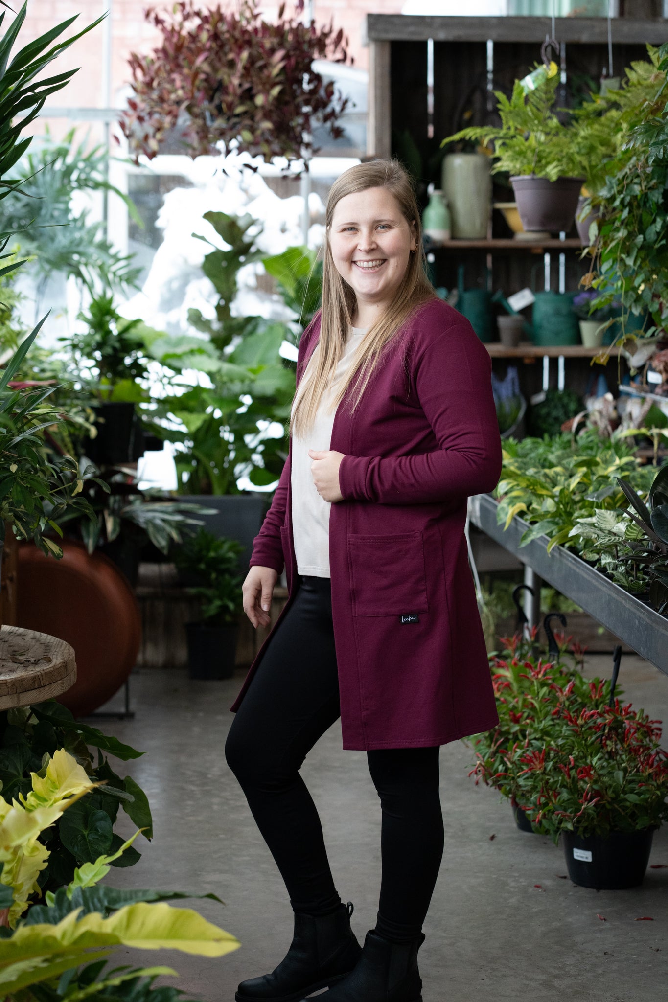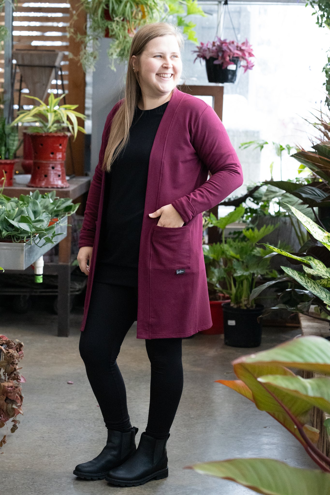 Veste longue, fait en french terry de bambou, tissu bouclé à l'intérieur. Parfaite pour porter par-dessus une camisole, tunique, t-shirt. Bref, s'agence avec tout.